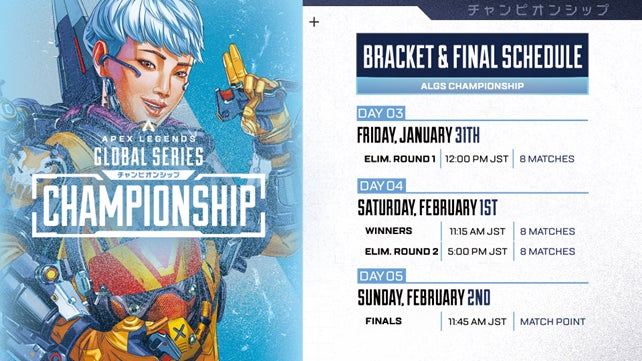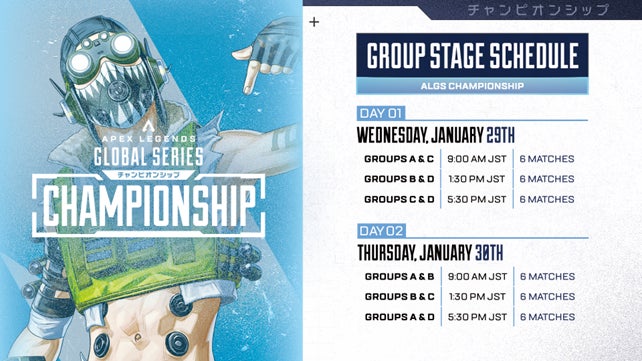 ALGS Championshipは5日間にわたって開催され、各地域から選出された40チームがALGS Year 4チャンピオンの称号を懸けて戦う。日本韓国地域のAPAC Northからは「FNATIC」「Meteor」「GHS Professional」「REIGNITE」「Crazy Raccoon」「ENTER FORCE.36」の6チームが最終決戦に臨むこととなった。なお、アジア初であり、日本での開催が決定した。