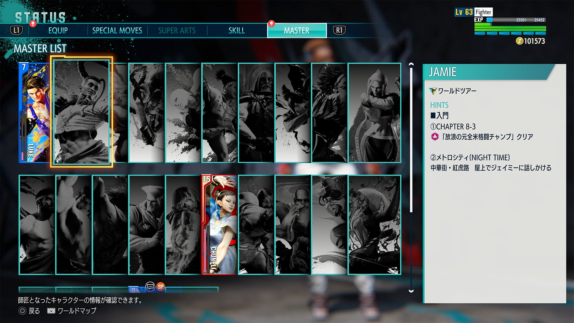 ワールドツアー内の「MASTER」メニューから、登場するすべての師匠情報を最初から確認可能になった。まだ出会っていない師匠の登場条件や入門方法が一目でわかるようになり、より快適なゲームプレイが可能になった。