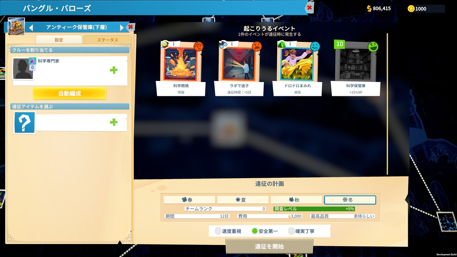 - 生存スキルを持つ宇宙専門家やアシスタント、警備員の編成が探索成功の鍵となる。