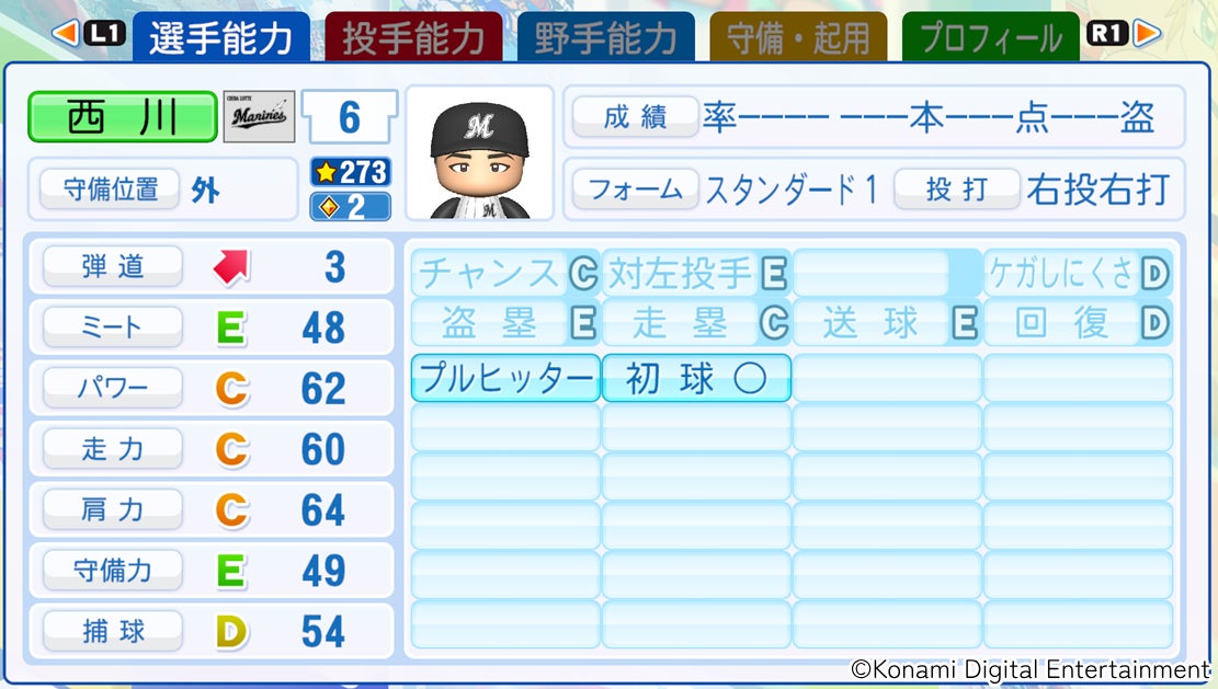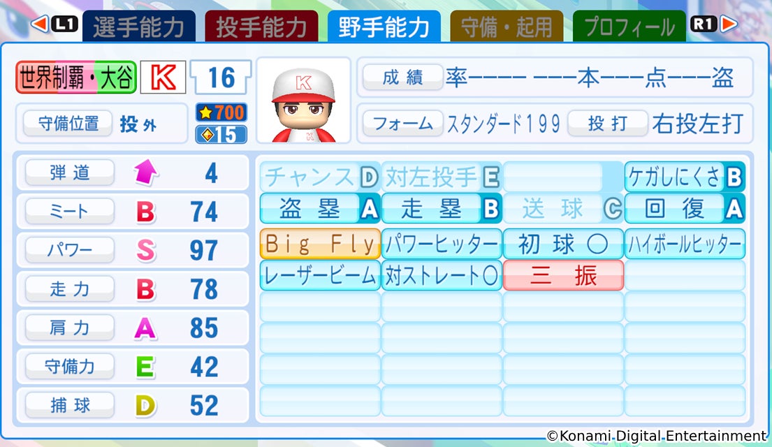 • Big Fly:強振時の打球に角度補正が入り、ホームラン性の打球になりやすくなる。