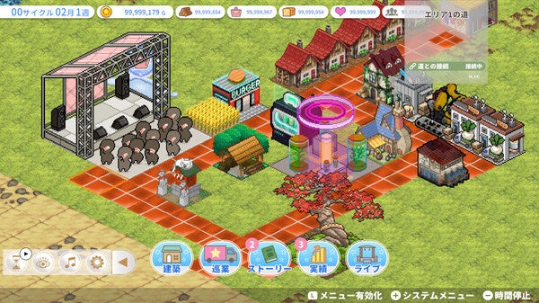 ライブミニゲームをクリアすることでアイドルが成長し、ファンが増えることで街もさらに発展していくというサイクルが特徴で、戦略性と育成要素が融合した遊び応えが期待される。